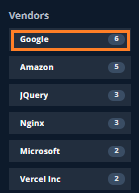 5.左ペインのFiltersの下にある、Vendors の項目ではベンダー視点での確認ができます。各項目の数字を確認し、SaaSサービスやロードバランサーのベンダーなどの内容を確認してみてください。