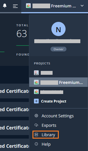 1.画面上部右側のプロジェクトタブから、Libraryをクリックします。